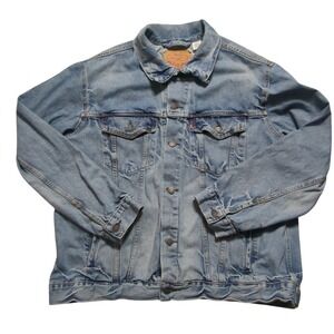 Vintage 90s Levis Mens 2XL XXL Distressed Type III Denim Trucker Jacket Blue USA