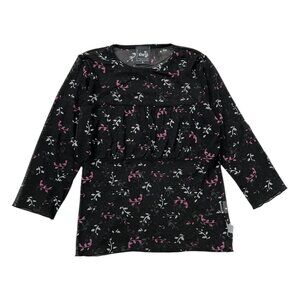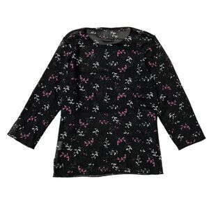 Vintage 90s Levis Silver Tab Women's Sheer Mesh Floral Top in Black