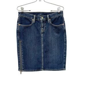 Vintage Levi's Y2K Premium Women's Zippit Kit Side Zip Cowboy Lasso Patch Short Denim Jean Skirt