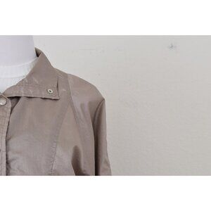Vintage women's Haband windbreaker jacket in champagne metallic color. Features front pockets, padded shoulders, and snap buttons. The jacket is in good condition.