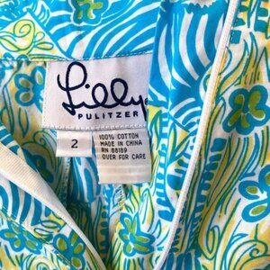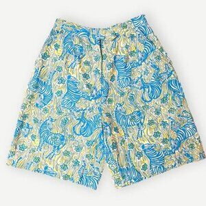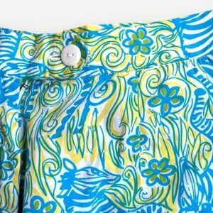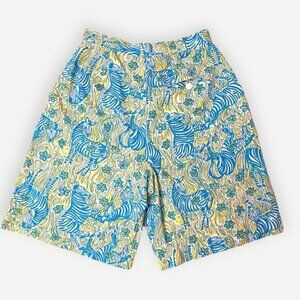 Vintage 90s Lilly Pulitzer Bermuda Shorts 2 Zebra Floral Blue Yellow Cotton EUC