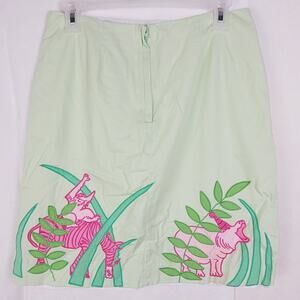 Vintage 90s Lilly Pulitzer womens Party Animals green embroidered skirt size 6