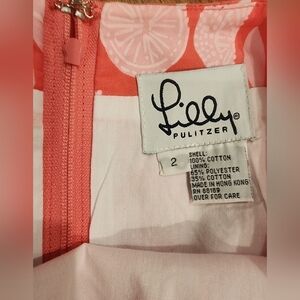 Perfect condition vintage white label Lily Pulitzer Pink A-Line Skirt with lemons and flowers with a beautiful scalloped hem.