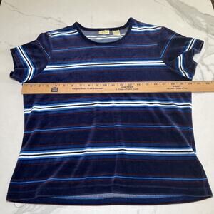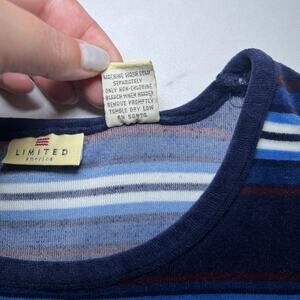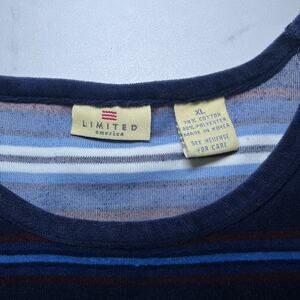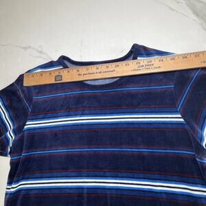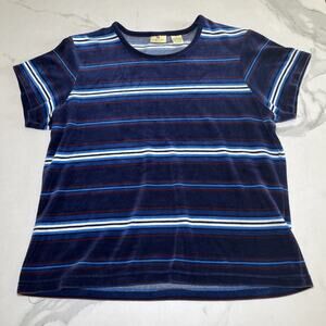 Vintage 90s Limited America Velour T-Shirt Navy Sporty Stripe Retro Size XL EUC