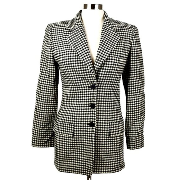 Vintage 90's Linda Allard Ellen Tracy Black/Cream Checked Blazer/Jacket