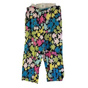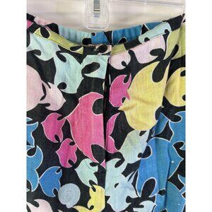 Vintage 90s Linen Rainbow Fish Cropped Pants Whimsy Artsy