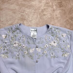 Vintage 90s Liz Baker Floral Embroidered Blouse Pastel Purple Pearlescent Beaded