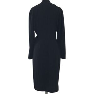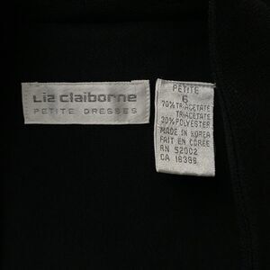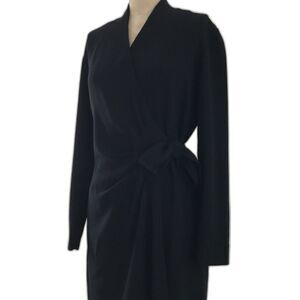 Vintage 90s Liz Claiborne Black Minimalist Chic Wrap Long Sleeve V Neck Dress 6P