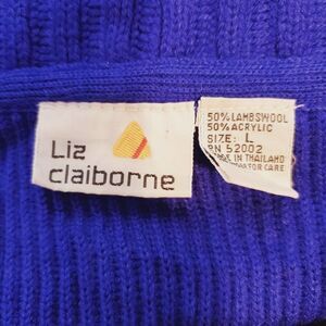 Vintage Liz Clairborne Blue Lambswool Blend Oversize Crop Cardigan L.