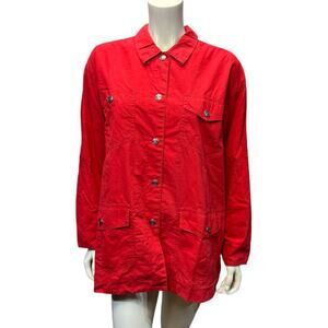 Vintage 90s Liz Claiborne Jeans Red Utility Jacket Size Medium - Safari Style