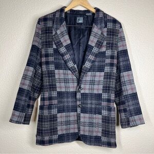 Vintage 90’s Liz Claiborne LizWear Peacoat Wool Plaid Grey/Navy Women’s Size 10