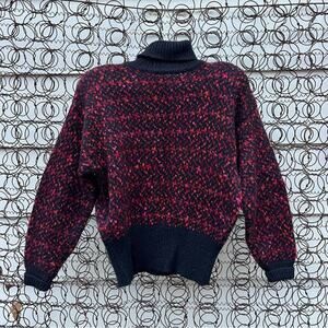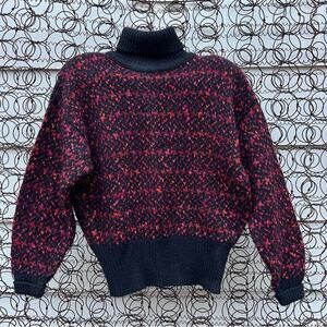 Vintage 90s Liz Claiborne Orange Fuchsia Black Knit Turtleneck Sweater MEDIUM