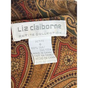 Vintage 90s Liz Claiborne Size 4P Brown Silk Paisley Blouse Top Career Work
