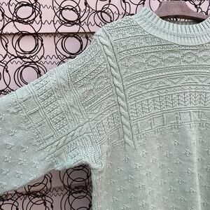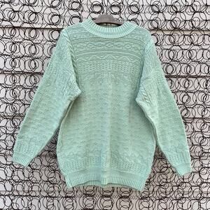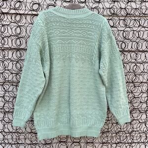 Vintage 90s LizWear Seafoam Green Geometric Textured Knit Tunic Sweater