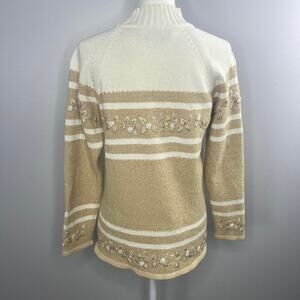 Vintage 90s Lizsport Tan Floral Embroidered Sweater Size Medium