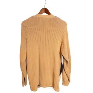 Vintage 90s Lizsport Tan Gray Argyle Knit Cotton Cardigan Sweater Large