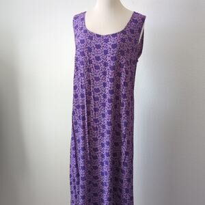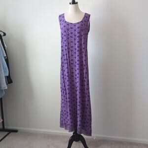 loco lindo made in California women's dress size extra large 100% rayon vintage tank dress black and look maxi purple printed boho festival length 55 across underarm 22 very cool vintage piece! And excellent condition!