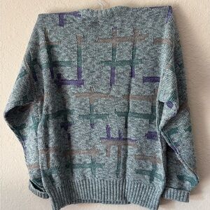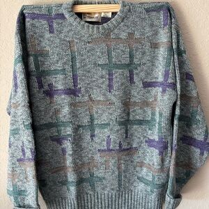 Stylish knit sweater by London Fog. Features heathered tones. Crafted from acrylic. Pre-loved