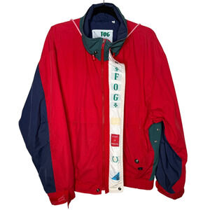 Vintage 90's London Fog Nautical Jacket Hood Colorblock Sailing Windbreaker Red