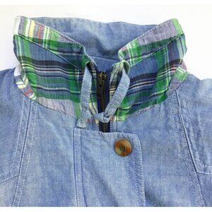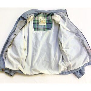 Vintage 90s London Fog Patchwork Plaid Jacket Womens M Blue Chambray Bomber Coat