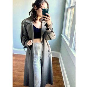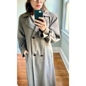 Vintage 90s London Fog Tan Gray Minimalist Staple Trench Maxi Coat 12