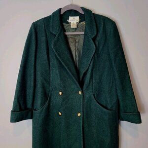 Vintage 90s Long Maxi Coat Preppy Heritage Winter Wool Green Size 16 Slouchy