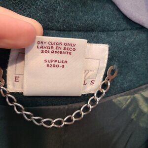 This Vintage 90s Long Maxi Coat is a preppy heritage winter wool garment in a size 16 with a slouchy fit. The coat features a solid green color, long sleeves, and a button closure. Made from knit wool fabric, it is designed for both casual and business occasions, adding a touch of retro charm to any outfit. This heavyweight, lined coat is ideal for the winter and fall seasons, perfect for adding a classic, hipster vibe to your wardrobe.