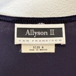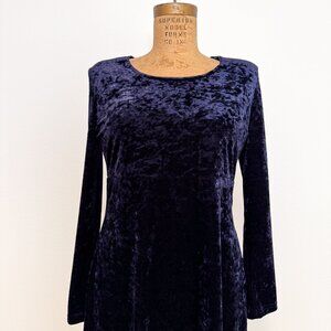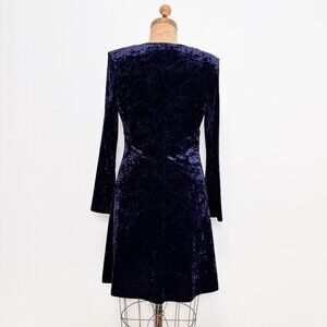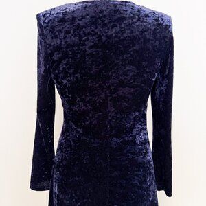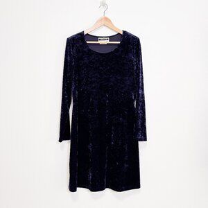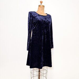Vintage 90s Long Sleeve Dark Blue Crushed Velvet Empire Waist Dress Size 8