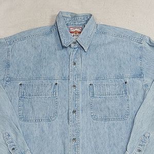 Vintage 90s Looney Tunes Embroidered Denim Long Sleeve Jean Shirt Size Medium. Please see pictures for condition and measurements for proper sizing and fit.