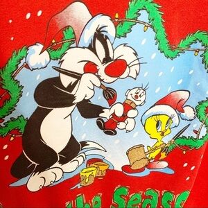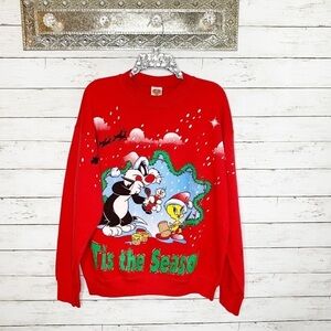 Vintage 90s Looney Tunes Tweety and Sylvester Red Christmas Ugly Holiday Sweater