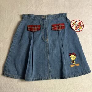 Vintage 90s Looney Tunes Tweety bird Denim jean Skirt Girls youth Size 14 Large