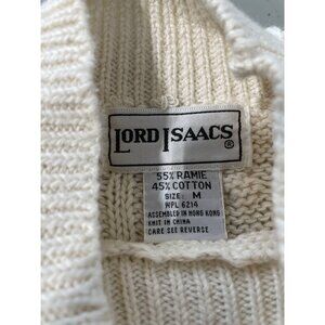 This Lord Isaacs medium-sized cable knit sweater combines a soft, durable blend of ramie and cotton. With its classic ivory hue and intricate knit pattern, it exudes timeless style.