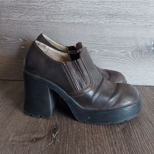 Vintage 90s Lower East Side Brown Chunky Heel Platform Loafer Size 9