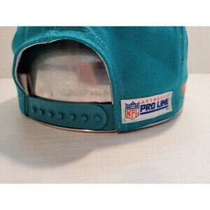 Show your team spirit with this vintage 90's Miami Dolphins AJD Pro Line snapback hat. This aqua-colored cap features the iconic "TEAM NFL" Pro Model design and is adjustable to fit any fan. It's the perfect accessory for any NFL enthusiast, whether you're at the game or watching from home.