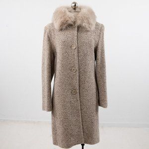 Vintage 90s M/L Fox Fur Collar Tweed Coat Tan