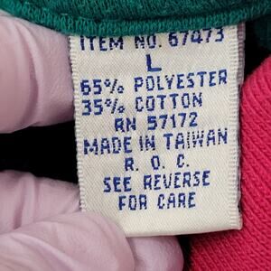 Throw it back with this vintage 90s MOD fleece sweatshirt. Colorblocked in green, blue, and pink women’s large with a boxy, baggy fit.