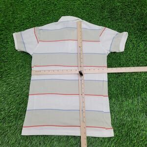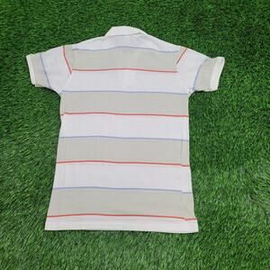 90s mod white polo with soft red and blue stripe pattern and slim fit womens XS to S vintage tennis style
