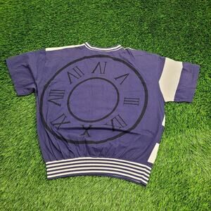 Vintage 90s MOD Stripes Shirt Womens Large 23x22 Boxy Baggy MCMLXV Clock Face