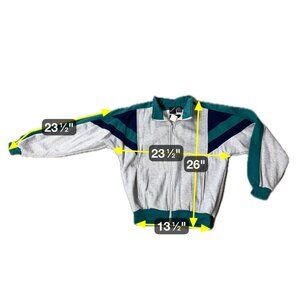 Vintage 90s MacGregor Full Zip Track Jacket Medium Gray Teal Blue Stripes Retro