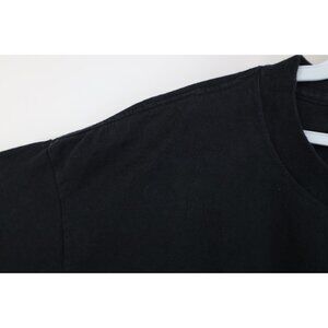 Blemishes front, back, shoulders, arms. Collar discolored. Graphics, color faded. Pilling. Made in USA