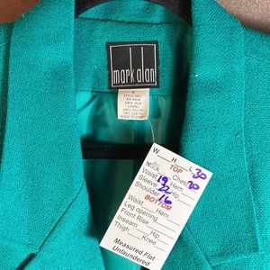 Vintage 90’s Mark Alan Big Shoulder Silk Blazer Jacket Turquoise Size 10