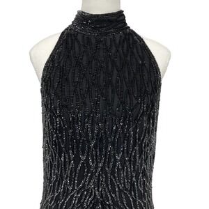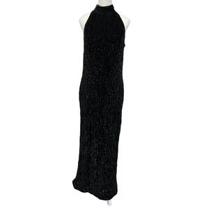 Vintage 90’s Mark & John by Sam Maxi Dress Sequin Black Silk High Neck XL