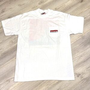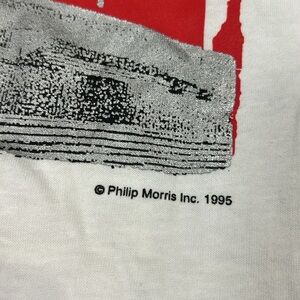 Experience comfort and style with this vintage 1995, new never washed or worn, Marlboro white graphic pocket T-Shirt. Perfect for casual outings, this vintage tee offers a sleek look.