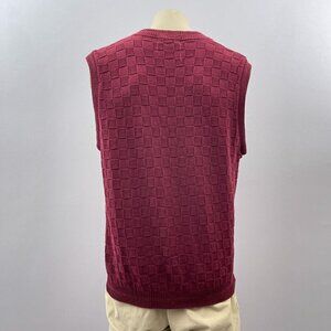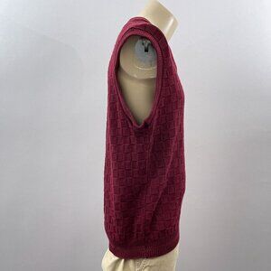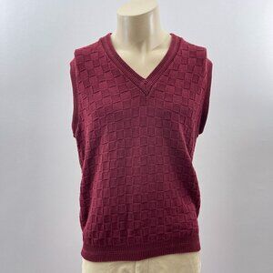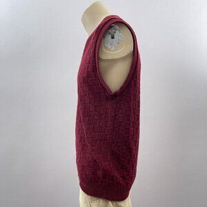Vintage 90s Maroon Sleeveless V-Neck Sweater Vest Pullover Checkered Textured M