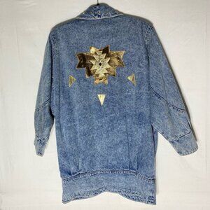 Vintage 90s Marshall Rousso Acid Wash Denim Jacket W Gold Western Accents S