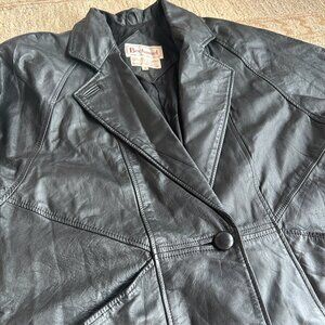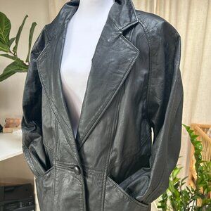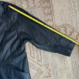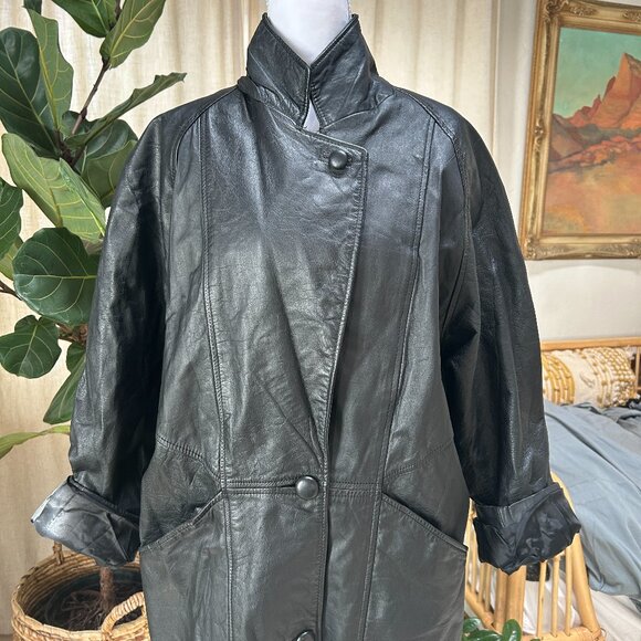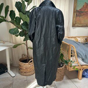 Vintage 90s Matrix Grunge Trench Coat Genuine Leather Black Oversized Women's M