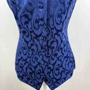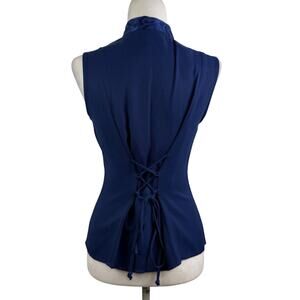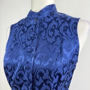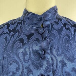 Vintage 90s Maurices Blue Textured Blouse 9/10 Mandarin Collar Corset Back Y2K