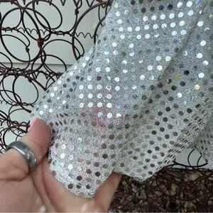 Vintage 90s Maurices Silver Sparkle Pailette Mini Dress Gown Party Glam Disco