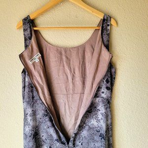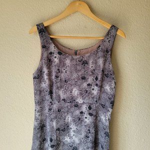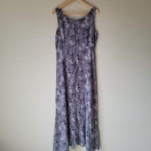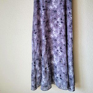 A late 90's, semi-formal, cool grey fever dream. This is the dress to wear when you need something special and you want to look like you belong in a 90's rom-com, like Jennifer Anniston in Picture Perfect. Cool gray florals with a taupey purple lining, scoop neckline, bra friendly straps, and 90's empire waist. In excellent condition.