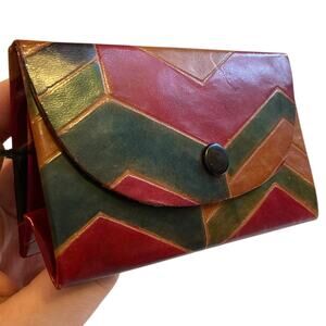 Vintage 90s Mediterranean Trading Co Hand Painted Leather Mini Crossbody Wallet